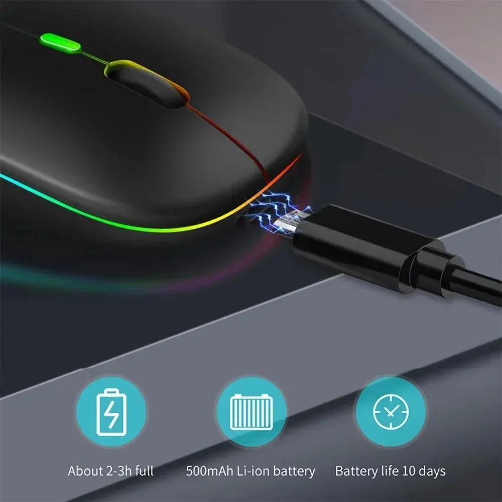 Dual-mode Bluetooth 5.1 Mouse 2.4G Wireless Mouse Rechargeable Silent RGB Backlit Gaming Mouse 1600 DPI Mice for Laptop Tablet